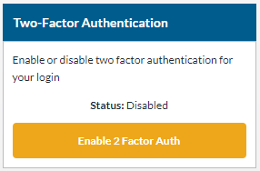 - Click the Enable 2 Factor Auth button.