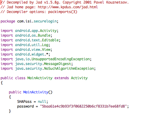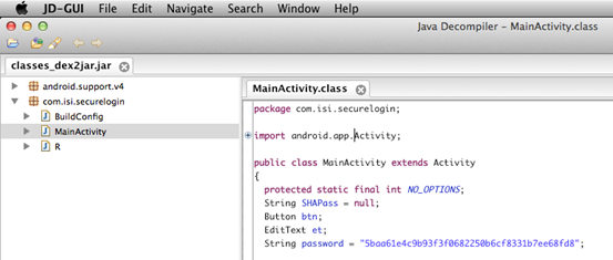 This section shows how to decompile the apps using dex2jar and JD-GUI. The only difference between this method and the previous method is usage of JD-GUI as a replacement to JAD.