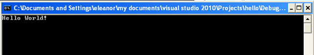 After the program runs, it prints the message to the console window and then waits for the key to be pressed. This happens because of the getchar() function that we've used so that the program doesn't print the message and terminates but waits before termination. On the picture below we can see that we've already run the program hello and that we're currently debugging it (notice the '*' besides the program name and also the 'hello' string in the status bar):
