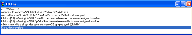 Actually, though, the program can't be executed successfully, since it's being run in protected mode, which isn't the same as the real mode. In order to run the program under protected mode, we would have to change the program accordingly, which we won't do here. Rather, we'll copy the killd.exe executable to the MSDOS environment and execute it there; after all, the executable was compiled for a 16-bit MSDOS environment.