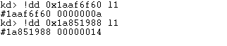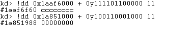 If we try to dump memory from the 0x095c0260 address, we won't receive anything useful (the data at those addresses is not defined). The result of running the "dd 095c0260" command can be seen on the picture below: