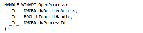 Now we'll explain various functions in the program so we can understand what the program actually does. First, let's take a look at the OpenProcess function, which syntax can be seen below [2]: