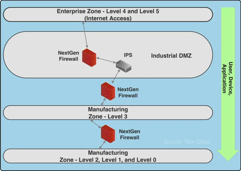 We must consider that many ICS networks were implemented 30 years ago … or more. They were implemented with little effort at controlled network access. This is why using next-generation firewalls designed for microsegmentation is a good approach: use of firewalls enables segmentation across any network infrastructure. Microsegmentation begins by defining the various layers of an ICS network.