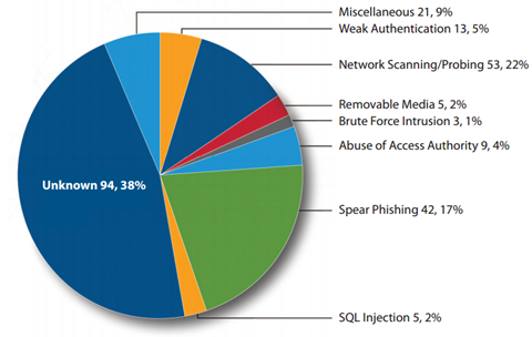 The victims were not able to identify the threat actors. Neither the attack vector exploited by hackers for 38 percent of the reported incidents,