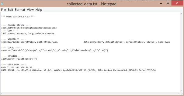 Figure 13: How the captured data looks like with the addition of variables and Geolocation