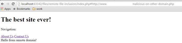 Figure 6: Without the remote URL having explicitly enabled CORS remote file inclusion is not possible