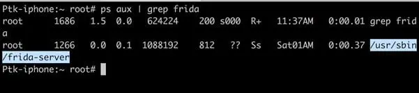 Now SSH into your jailbroken device and you will see a process with the name frida-server which is running.