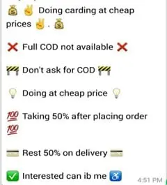 - (Few carder arrange fake id if delivery boy ask for proof).