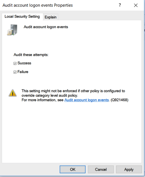 Your system can now audit for logon attempts, both successful and failed. This should be done ideally before threats breach your system so make sure that you get this done as early as possible.