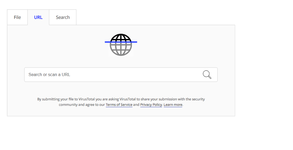 So, you have seen just how malicious URLs can be. The next step is being able to detect them. The easiest way to do this is to use a third-party lookup tool. Virus Total is a third-party tool that lets you search for a suspicious URL to see if it is malicious. The search bar below lets you input any URL that you suspect and search it against any AV engine that has picked up the URL as being malicious. It can be found here: