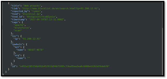 Using Cymon’s API, we were able to query for more information from this source. We used the following curl command to achieve our results: