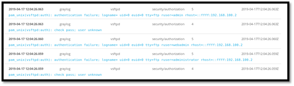 We recently discovered a breach attempt on one of our company’s production servers. Unbeknownst to the attackers, we had our Graylog instance installed within the same server, which allowed us to monitor their attempts at unauthorized access. The attackers were discovered to have performed numerous brute-force attacks against the FTP and SSH services on our server and had managed to gain access to our server. We had previously configured the server to send logs to Graylog through rsyslog.