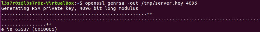 In this step, we are generating the private key to the certificate. The command used and output is shown below: