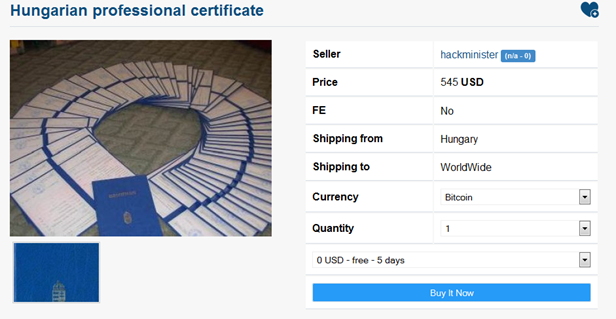 We have seen that in the underground marketplace, it is possible to acquire a working Social Security card, name, and address for $250. In some cases, it is possible to pay an extra fee of a few dozen dollars to buy a utility bill to use in identity verification processes. Among most popular goods in the underground, there are counterfeit documents, including non-US passports, which are available for a cost between $200 to $1000. Usually it is very hard to find US passports because US law enforcement is believed to infiltrate the hacking community, making their commercialization risky. Fake US driver's licenses run for $100-$150, meanwhile counterfeit Social Security cards run between $250 and $400 on average. In both cases, these documents could be used to improve efficiency of fraud schemes.