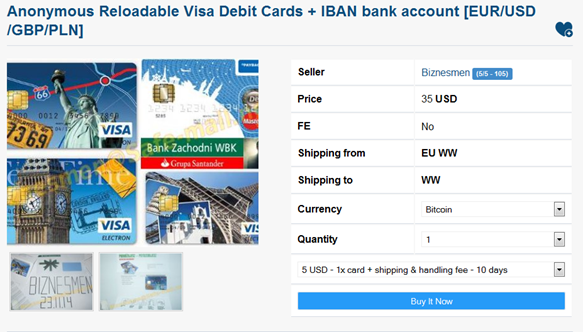 A limited number of sellers on Nucleus also offer Relodable card, a precious commodity for card fraudsters that need to cash out their efforts. The criminals use to recharge these cards with illegal profits and cash out by withdrawing at bank ATMs or by acquiring luxury objects and electronic equipment.
