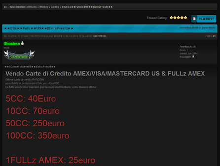 Among the services offered in the Italian Darknet Community are also carding and full drop services.