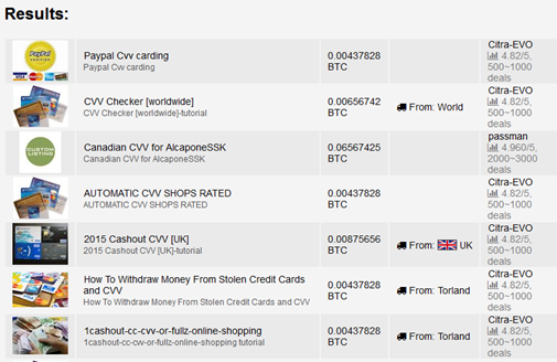 US Stolen card data (CVV) are offered for prices that range from 5 up to 15 EUROS meanwhile European records are sold for 13 – 25 euros.