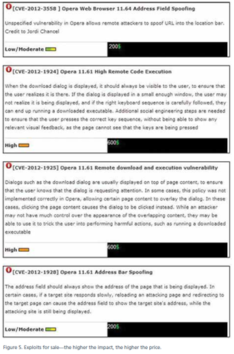 Figure 3 - Exploits for sale (McAfee Report)