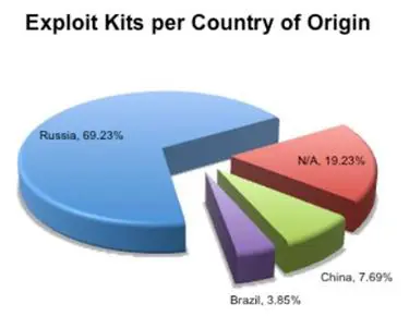 The report revealed the surprising efficiency of well-known vulnerabilities that are usually part of popular exploits sold in the underground; around 60% of the total is more than two years old, and 70% of the exploit kits analyzed (26) were released or created in Russia.
