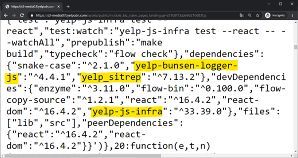 Figure 4: Yelp internal packages exposed on the internet via configuration files.