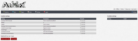The Atrax crimekit has a modular structure. The malware includes a series of add-ons that implement the functionalities described. A plugin which implements a data stealer was sold for $110, the form grabber runs for $300, and an experimental add-on for coin mining was sold for $140.