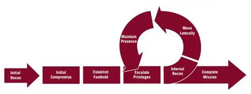 The following figure represents the threat cycle of APT1, but could just as easily be applied to any advanced persistent threat.