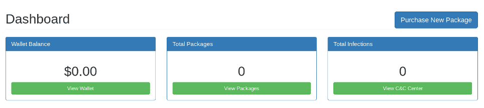 Once the users register to the platform and purchase a new package, the platform assigns them a personal bitcoin address. They can control statistics about the ransomware campaign and check their earnings.