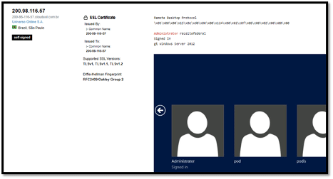 Finally, the screenshot below shows a Windows server in the United States of America with the administrator account and two more.