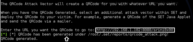 - If a victim scans this QRCode with QRCode scanner app from his Android device, it will open it up in a browser and a remote session will be opened in Metasploit.
