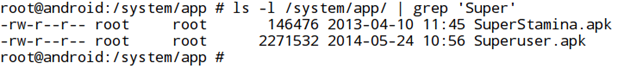 - To bypass this check, let's rename the application "Superuser.apk" to "Superuser0.apk" as shown in the figure below.
