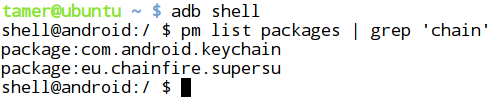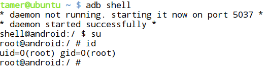 - Let us first reconfirm manually if the device is rooted by executing "su" and "id" commands.