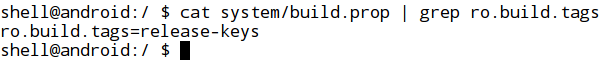 - Checking the BUILD tag for test-keys: This check is generally to see if the device is running with a custom ROM. By default, Google gives 'release-keys' as its tag for stock ROMs. If it is something like "test-keys", then it is most likely built with a custom ROM.