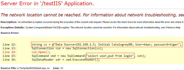Malicious hackers can obtain sensitive information about the web server and application while encountering an error. If the website is unable to handle an unexpected fatal error, it is more prone to exploit, because the default HTTP status displays along with other information which enchants the hackers. For example, take a look at the generated error page thrown by the server. Here one can easily obtain a bunch of critical information like user name, password, server IP, database structure, etc.