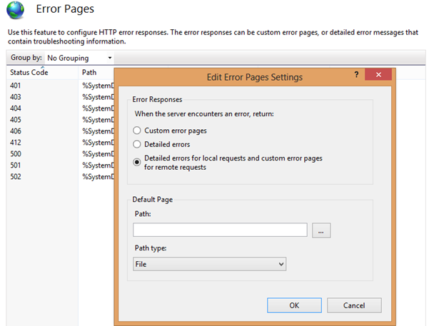 So, it is a bad programming practice not to handle errors in the form of HTTP status code. Instead, there should be custom error pages in case of any error occurrence, so that sensitive information could be hidden. Custom error pages can be set for each HTTP status code. Therefore, IIS has a convenient method of displaying a different error to end-users than to administrators and developers, as follows.