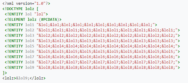 By disabling DTDs, application developers are also able to strengthen the parser’s ability to protect itself against DoS (denial of service) attacks like the infamous quadratic blow up attack, Billion Laughs (see code example below).