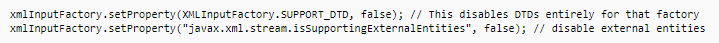 An example of how a developer might protect a Java XMLInputFactory instance from XXE looks like this: