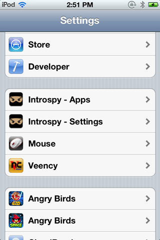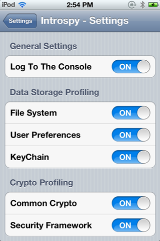 Once the tracer has been installed on your device, reboot or respring it. Go to Settings app and you will now see a different section for Introspy.