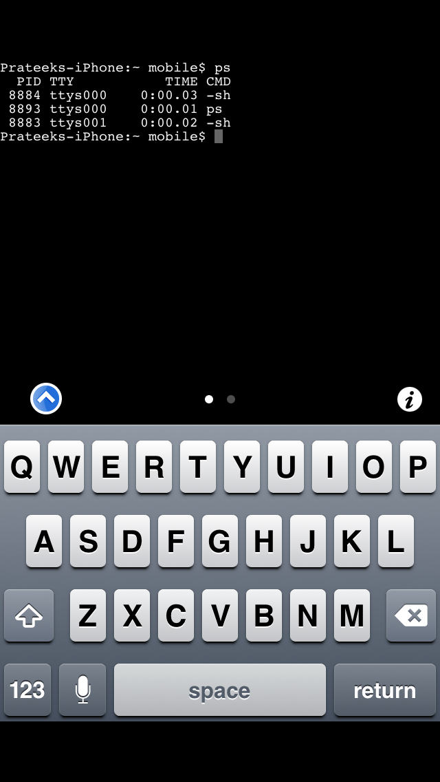 Tap on it, you will be given a terminal. Now try and run any Unix command on it. In this case, let me get a list of all the running processes by using the command ps