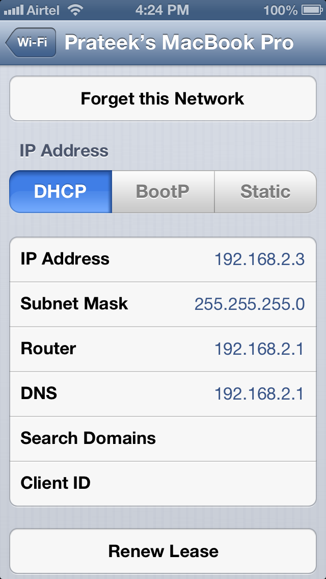 Let's see if we can login to our jailbroken device using ssh. Make sure your laptop and the device are connected to the same network and then find out the IP address of the device. To find out the IP address of your device, just go to Settings -> Wi-Fi and then click on the network your device is connected to.