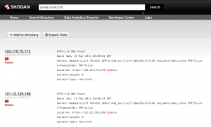 As an example, imagine you're interested in discovering results for servers running Joomla in a specific country. A query such as joomla country:CN would result in Figure 1.