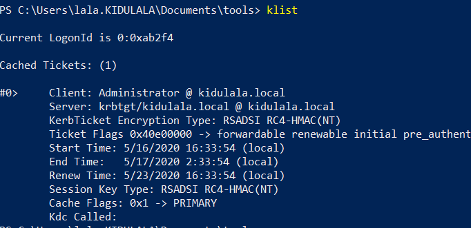 - Below, we can see that the TGT is created and present in the session.