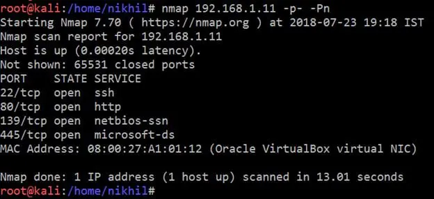 Command Used: nmap 192.168.1.11 -p- -Pn