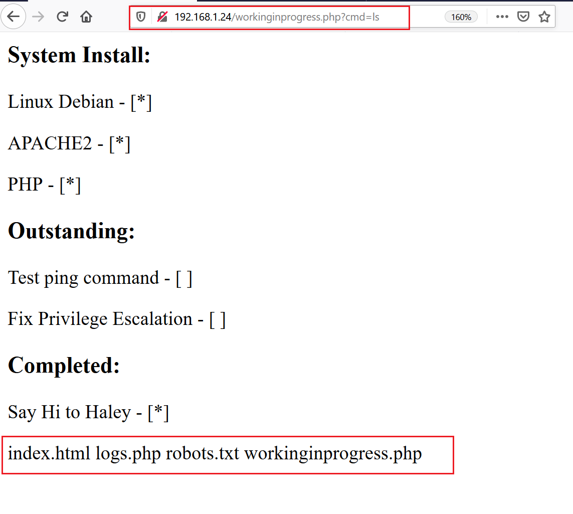 As we can see, the decoded string “workinprogress.php” seems to be a file on the target machine web application. Let’s open the file on the browser and see if it works.