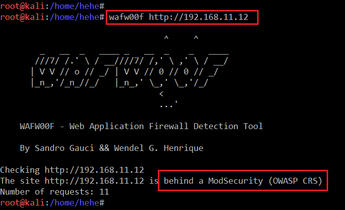 In this step, I will be using the wafw00f tool to identify the firewall on the target machine. The tool worked successfully, and the output of the tool reveals that the target application is behind a Web Application Firewall (WAF). The firewall name is Mod Security. The results can be seen in the following screenshot.