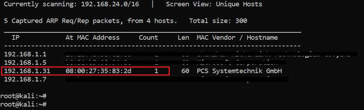 - Get the target machine IP address by running the Netdiscover utility