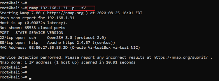 Command used: nmap 192.168.1.31 -p- -sV