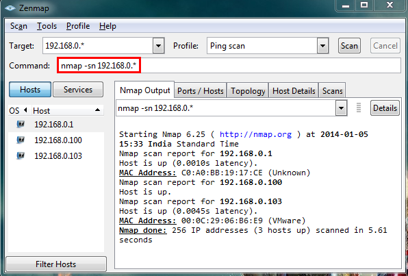 As can be seen in above figure, nmap detected three hosts: The IP 192.168.0.1 is my router, the IP 192.168.0.100 is my system's IP, and the IP 192.168.0.103 is our target. Try to open this IP from browser.