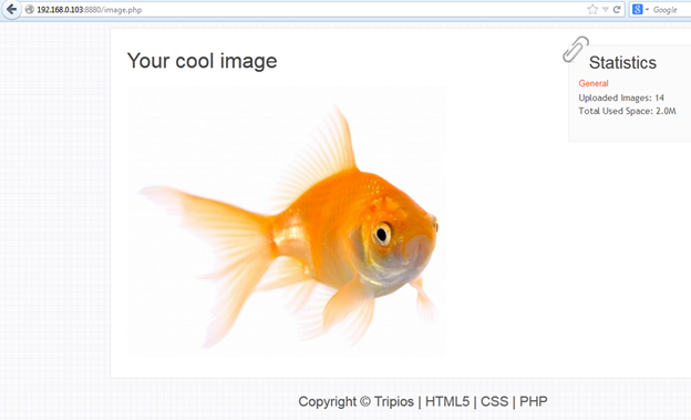 For an example, we will upload an image named fishy.jpg. After successfully uploading the image, it will redirect to image.php which is showing our uploaded image.
